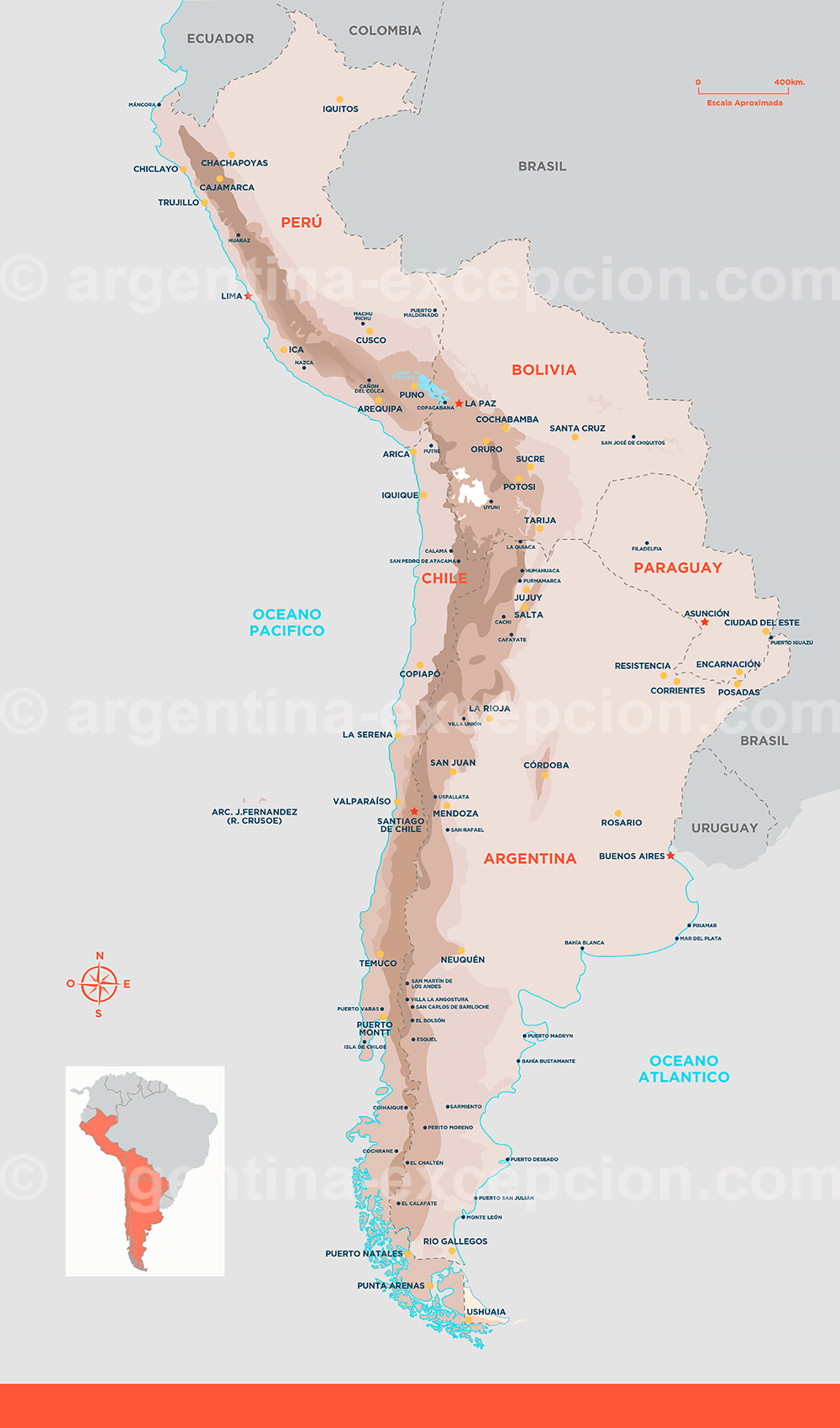 Argentine, Chili, Bolivie, Paraguay et Perou