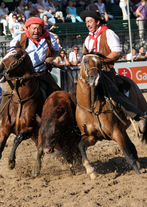 Le cheval criollo s’imposa donc naturellement comme le compagnon indispensable du gaucho, véritable cow-boy made in Argentine. Outre son utilisation comme moyen de transport ou outil de travail avec le bétail, il est également au centre des disciplines sportives pratiquées par le gaucho. On le retrouve ainsi au cœur de la jineteada, de la sortija, ou encore de la paleteada.