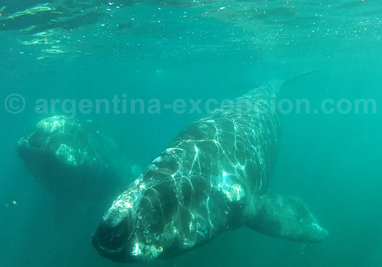Ce mammifère marin de la famille des cétacés est protégé en Argentine depuis 1937. Il mesure de 13 à 15 m pour un poids de 40 à 50 tonnes. La baleine franche australe passe l’hiver dans les eaux tempérées de la péninsule de Valdés pour se reproduire ou mettre bas. De 2500 à 3000 baleines arrivent de l’Antarctique à partir de fin avril pour donner naissance, entre juillet et octobre, à 200 petits, qui seront allaités pendant un an. La gestation dure de 10 à 13 mois. Les mâles se livrent à une rude concurrence, en sautant ou en donnant des coups de queue ou de nageoires, pour conquérir un maximum de femelles. En été, au mois de décembre, les baleines repartent vers le Sud, dans les eaux froides où elles se nourrissent, protégées par leur épaisse couche de graisse qui leur sert d’isolant thermique. Leur menu se compose essentiellement de krill et de plancton et, comme tous les mammifères, la baleine a le sang chaud, respire de l’air, est vivipare et n’a généralement qu’un seul petit à la fois. Contrairement au dauphin, elle n’a pas de dents mais des fanons. Espèce vulnérable.