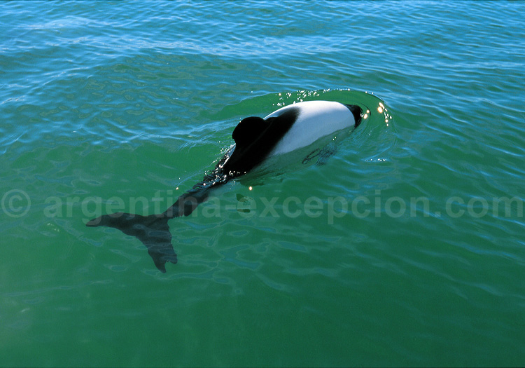 Le dauphin de Commerson est l’un des plus petits de son espèce de mammifères marins (famille des cétacés). Petit (1,50 m maximum) et trapu, il évoque parfois le marsouin. Il se caractérise aussi par sa couleur: corps blanc, tête et nageoires noires. C’est la population argentine qui est la plus importante, sur les côtes de Patagonie et dans le détroit de Magellan. Il s’approche tout près des côtes, nage en groupe et joue dans le sillage des bateaux, ce qui lui vaut parfois de se laisser prendre dans les filets de pêcheurs. Il se nourrit de poissons, calamars et crustacés.