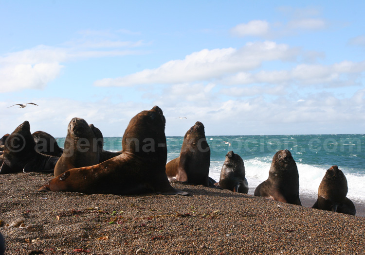 Les lions de mer sont les plus grosses des otaries. Ces mammifères marins s’installent sur la terre ferme (Patagonie, Terre de Feu) lorsqu’ils ont besoin de se reposer, de se reproduire et de mettre bas, en décembre-janvier. Cousins des phoques et des morses, ils vivent en colonies et ont longtemps été chassés pour leur fourrure. Le mâle commande un harem, qu’il défend en combattant et en poussant d’impressionnants rugissements. Le mâle pèse 300 kg, le double de la femelle, et arbore une crinière. La gestation dure un an et la femelle ne fait qu’un petit à la fois. Les lions de mer se nourrissent de poissons et crustacés et peuvent plonger jusqu’à 60 mètres. L’otarie, contrairement au phoque, a des oreilles externes et peut se maintenir sur ses nageoires frontales.