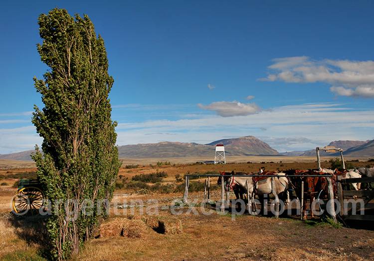 DESCRIPTIF : les Argentins appellent cela un día de campo : il s’agit de profiter, le temps d’une journée, de l’environnement et d’observer les activités d’une estancia. Nibepo Aike est située dans un paysage féerique incluant le lac Roca, le bras sud du lac Argentino, les pics faisant face sur l’autre rive, des alpages et des forêts de lengas. La piste qui y mène vaut à elle seule le détour. Ne manquez pas de monter sur la petite colline où se trouvent les gardes du parc. Vous serez libre de profiter des activités offertes par l’estancia : promenade équestre entre le lac et le cordon de Los Cristales, ascension au dessus de l’estancia pour admirer le puzzle que forment les différents bras de lacs, avec en fond de tableau le glacier Perito Moreno. Les gauchos de l’estancia vous proposeront de vous montrer la tonte d’un mouton. Enfin ils vous inviteront à un succulent asado (grillade de viande). Cette famille, arrivée au début du XXe, fait partie des pionniers de la région.