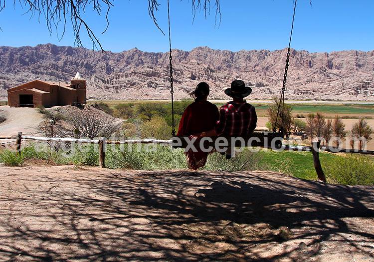 DESCRIPTIF : parcours sur la Route 40 en direction de la Poma, village le plus élevé de la vallée des Calchaquíes (3015 m). La piste passe par les villages indiens de Payogasta et Palermo et offre des scènes très photogéniques de troupeaux de lamas et de vigognes. Petite marche pour aller voir le pont du Diable, structure naturelle dans laquelle s’engouffre le río Calchaquí. Somptueux panorama sur les deux volcans Los Gemelos, vieux gardiens du village de La Poma qui fut détruit par un tremblement de terre le 24 décembre 1930. Outre les ruines de l’ancien village, on peut visiter d’anciens vestiges précolombiens. Figé dans le temps, ce hameau est un feu d’artifice de couleurs et d’arômes.